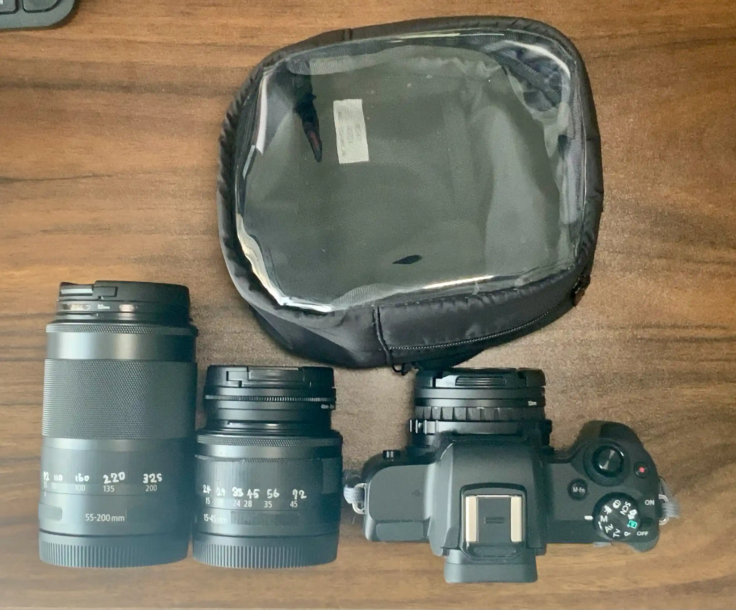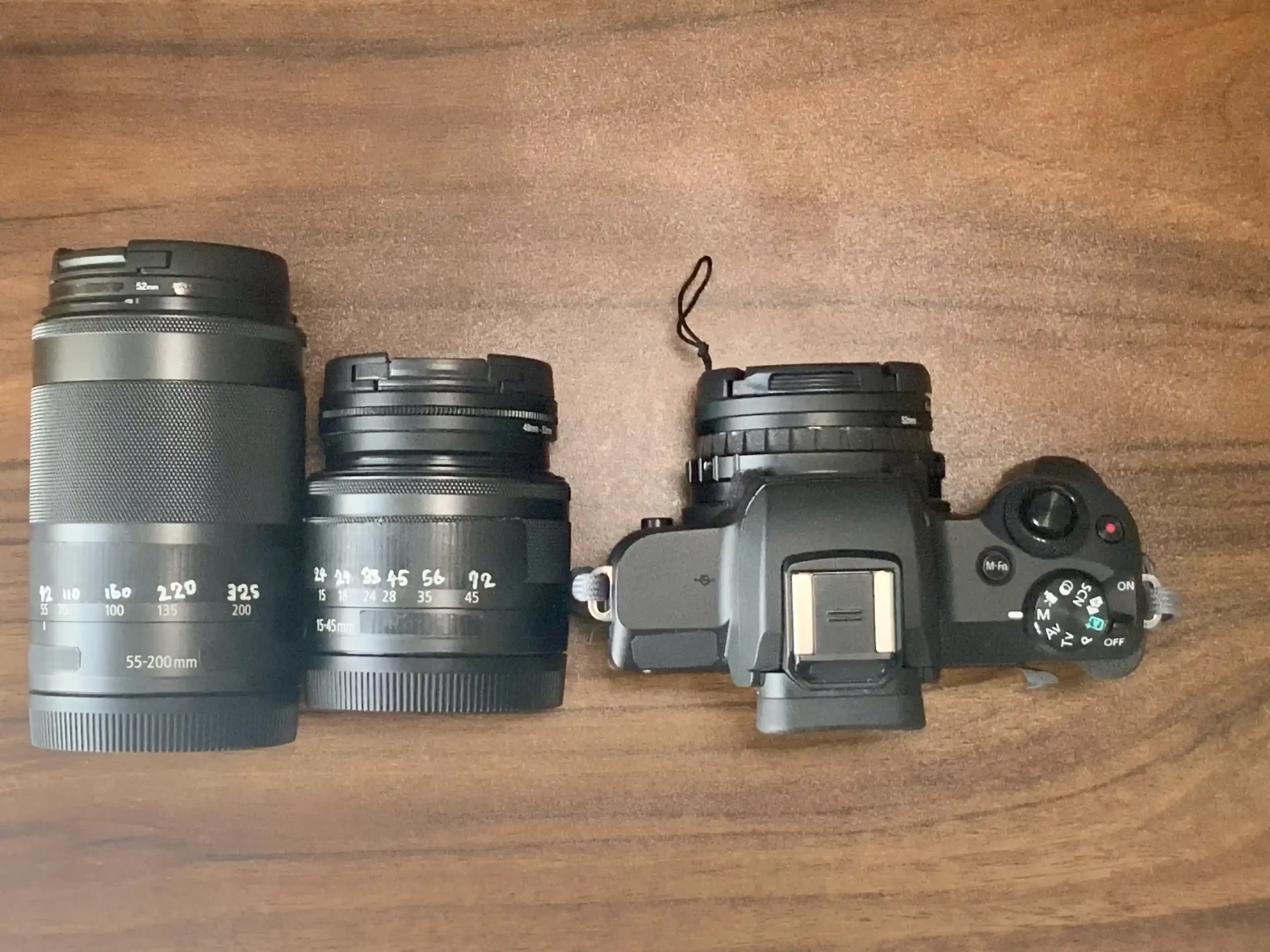 こちらが私のミラーレス一眼カメラ。通称「お母さんカメラ」ですね。CANONの「KISS M」です。もう絶滅してしまったEF-Mマウントのカメラです。小さいのが良い!