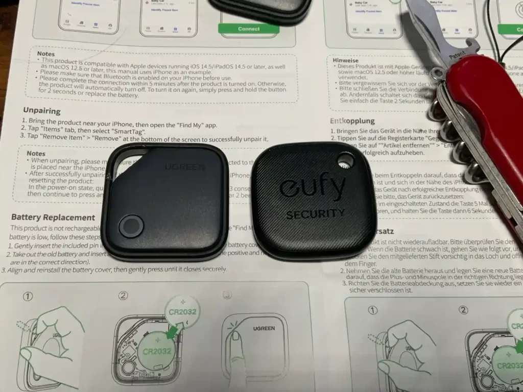EufyくんはSIMピンで簡単に開きました。あと、書き忘れていましたがEufyくんは1700円でしたUGREENくんは1275円なのでチープさはあるが機能はするので見える所はEufy、それ以外はUGREENになるのかと思います。またEufyは鍵につけてるのですが、たまにボタンが押されて音が鳴りびっくりする事があったので、UGREENのように物理的にボタンが小さいのは利点かもですね。