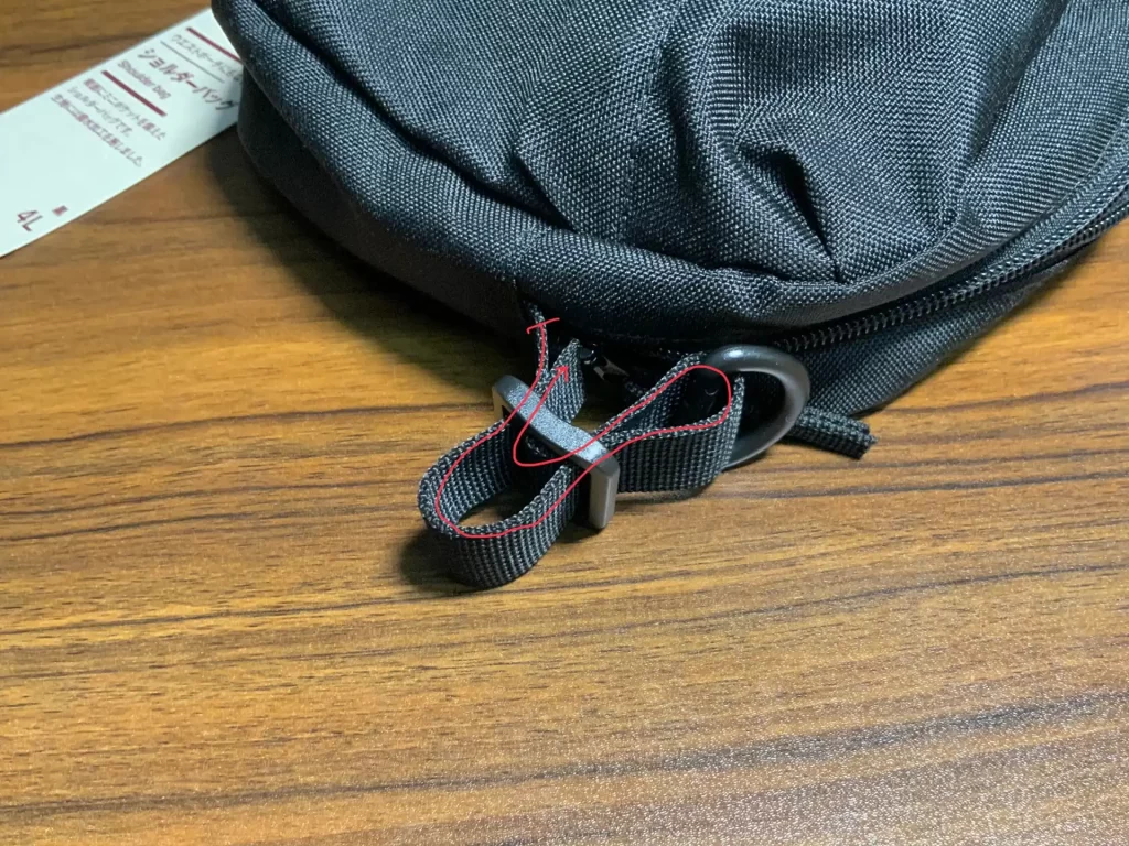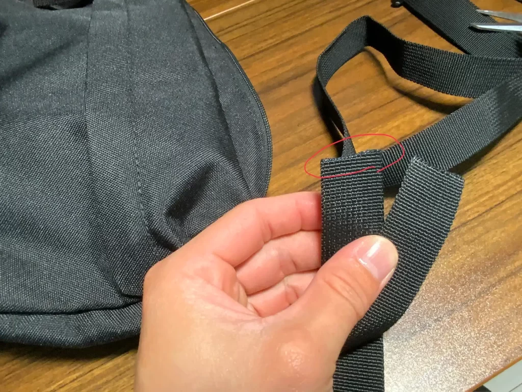反対側はバックルが縫い付けられていたので、この構造を利用します。