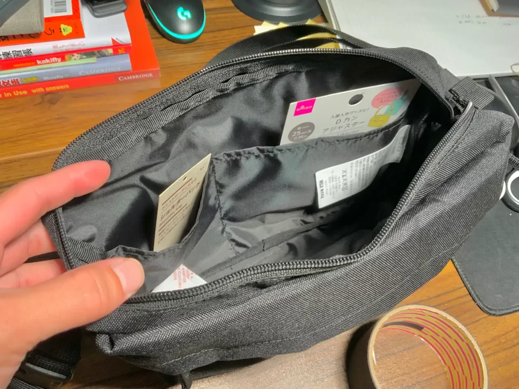 ベースは無地良品のショルダーバッグです。