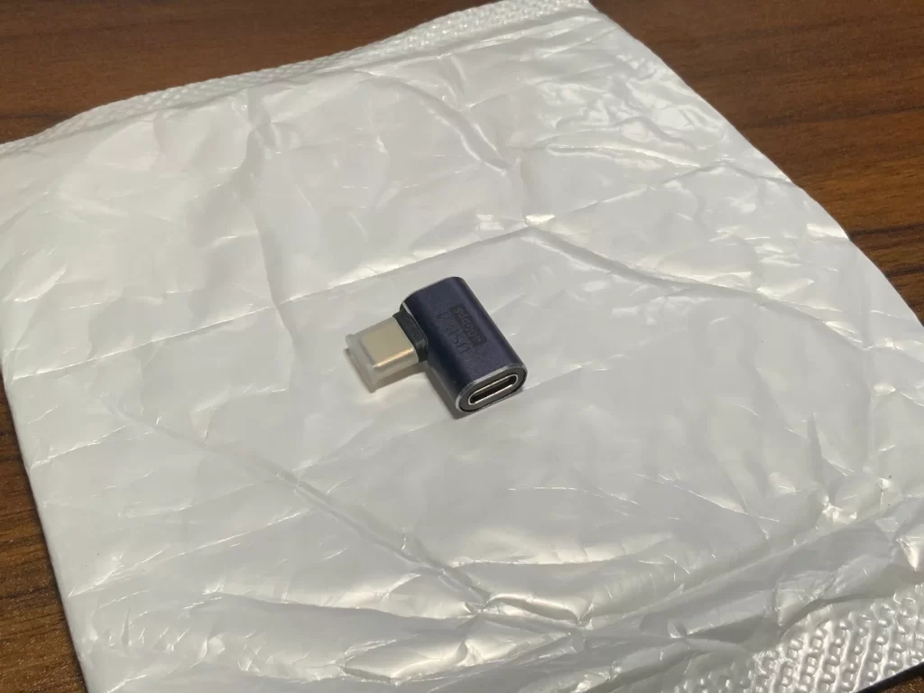 せめてこうケーブルの向きを変えたくて、最近このL型プラグを購入しました。