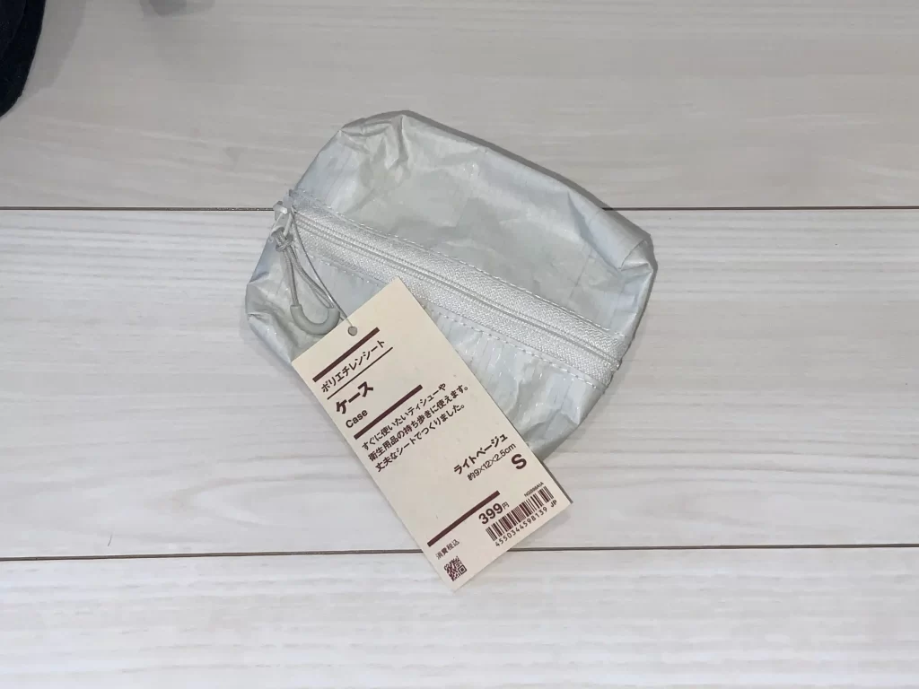 たまにしか使わないので、使いかけのティッシュの中にゴミが入り込んでしまうんですね、それを防止するために無印でちょうど良いポーチを見つけたので使って見ます。