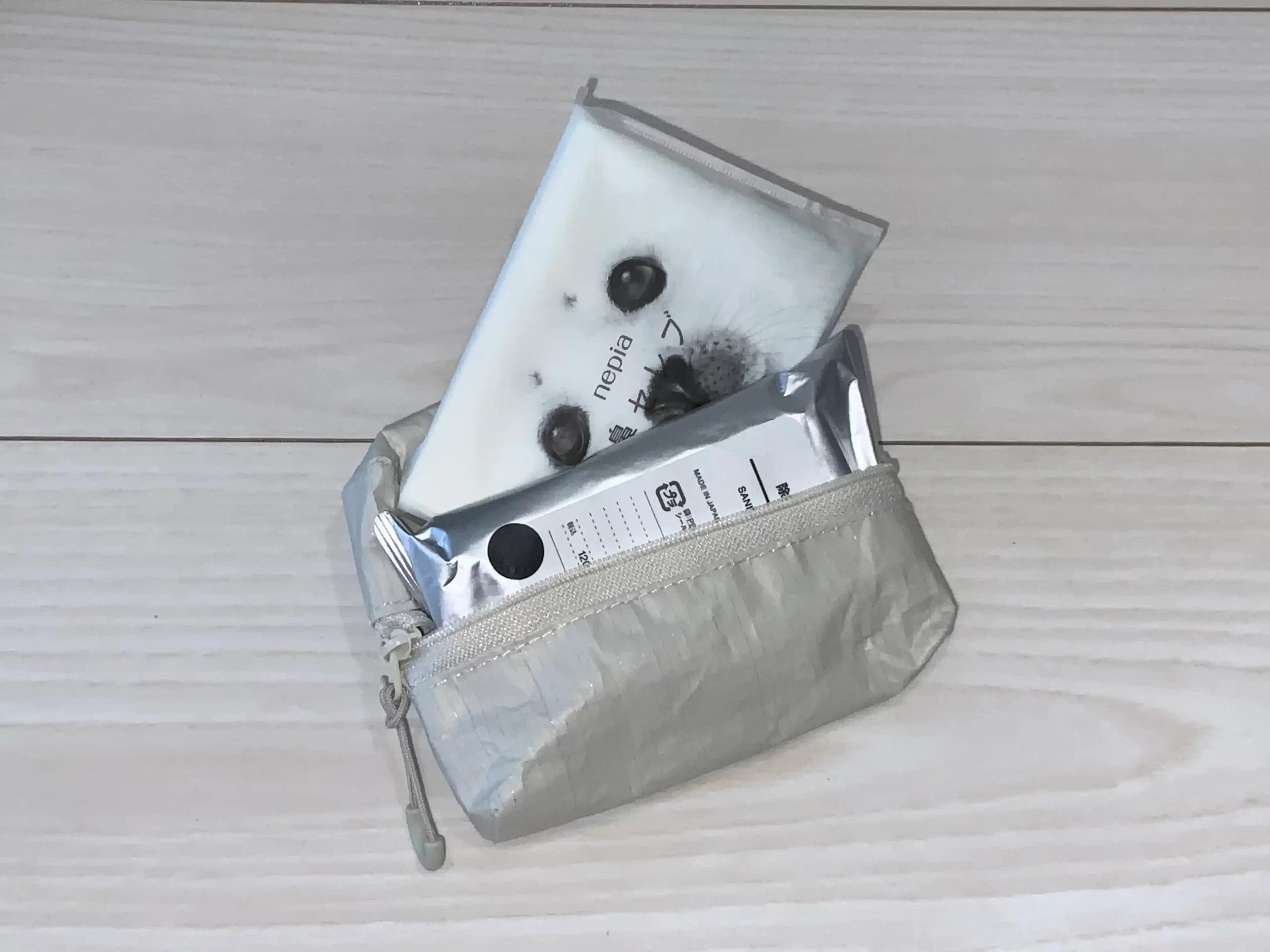 いつもはこんな感じでティッシュと除菌シートを持ち歩いているのですが、